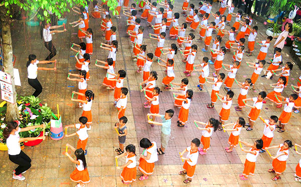 Bài tập đồng diễn của các bé Trường Mầm non 2 Tháng 9 tại TP Cần Thơ.