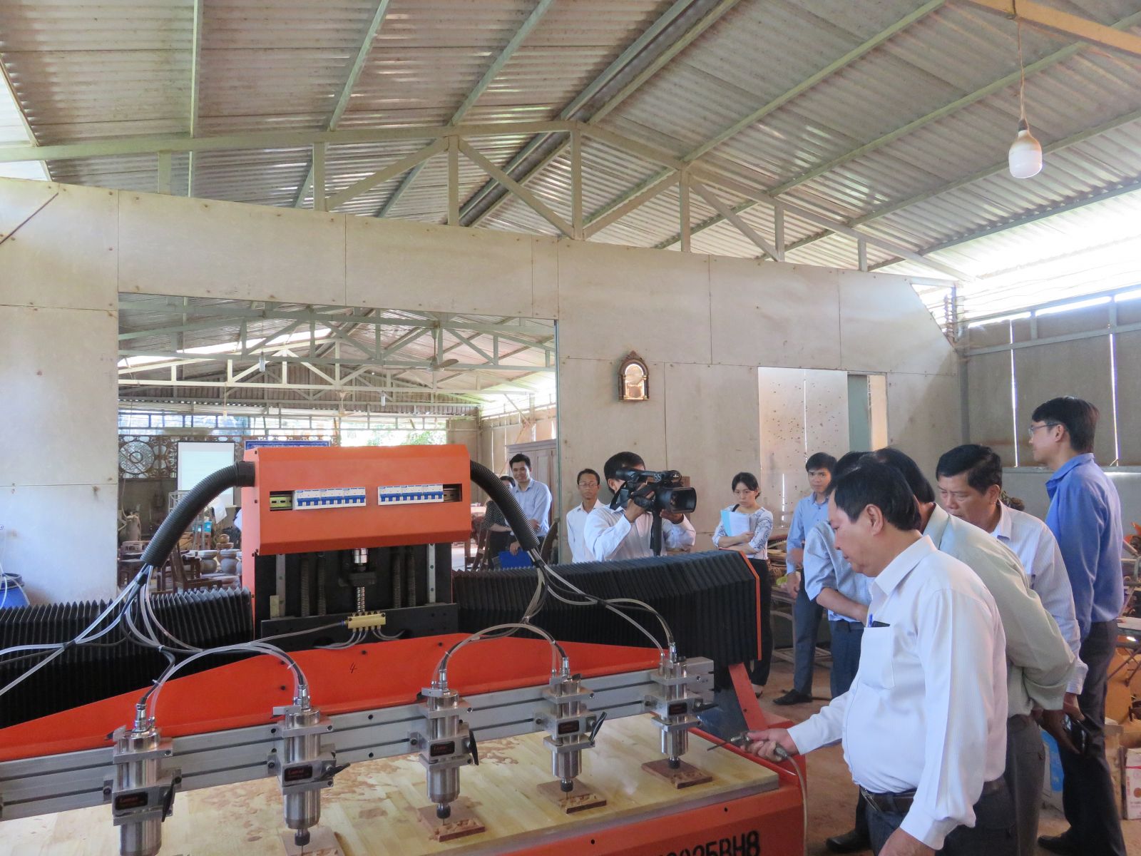 Sở Công Thương, Trung tâm Khuyến công và Tư vấn phát triển công nghiệp tổ chức trình diễn, nghiệm thu đề án “Hỗ trợ ứng dụng máy khắc tự động trong sản xuất - gia công gỗ mỹ nghệ” sử dụng nguồn kinh phí khuyến công địa phương năm 2019
