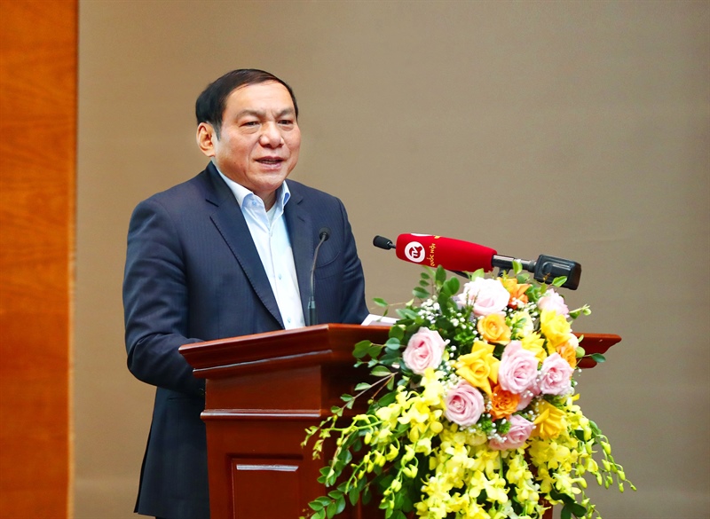 | Bộ trưởng Bộ VH-TT&DL Nguyễn Văn Hùng phát biểu tại Hội nghị (Ảnh: T.H) |