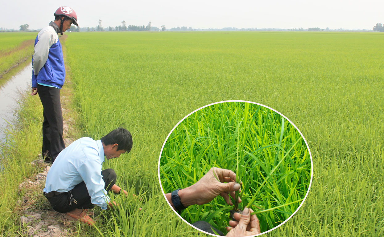 Nhiều diện tích lúa Đông Xuân ở các huyện vùng Đồng Tháp Mười bị sâu năn gây hại