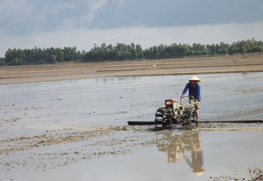 Nông dân làm đất gieo sạ lúa Hè Thu 2018
