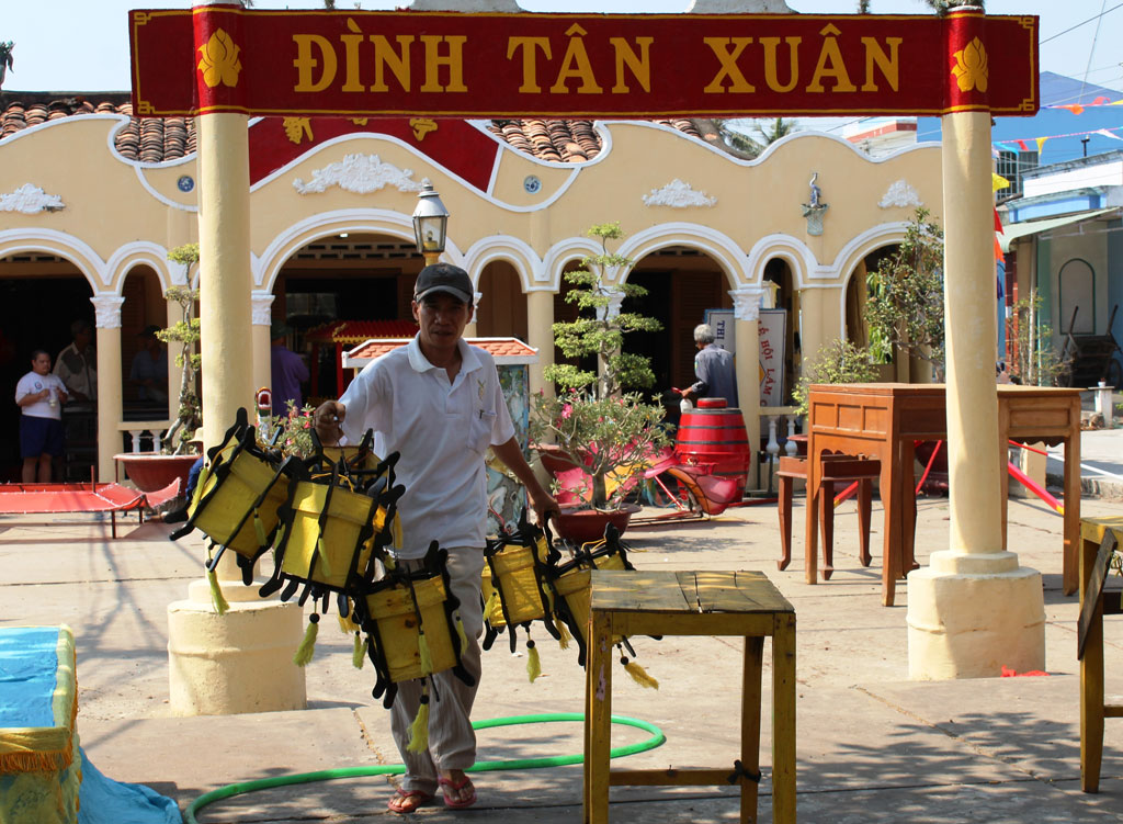 Tất bật trang trí, sơn sửa lại đình Tân Xuân