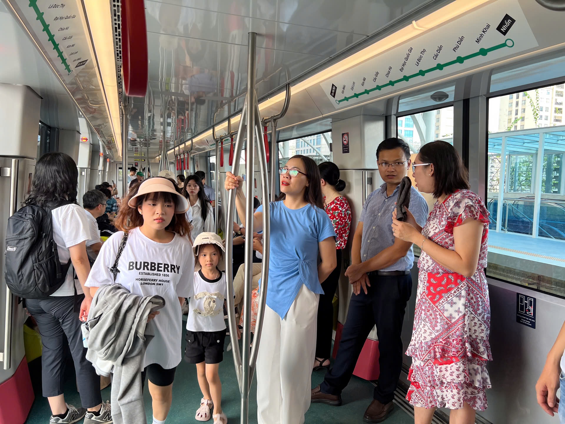 Tàu điện metro tuyến Nhổn - ga Hà Nội thu hút khách trải nghiệm