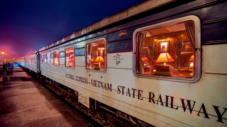 | Đoàn tàu Victoria Express - Vietnam chuyên chạy phục vụ du lịch tuyến Hà Nội - Lào Cai với các toa giường nằm hạng sang. |