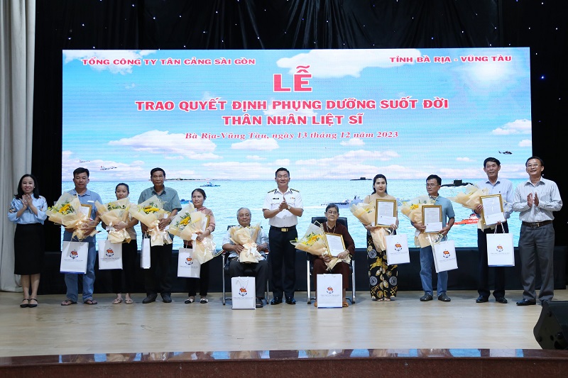 Đợt này, Tổng công ty Tân Cảng Sài Gòn nhận phụng dưỡng suốt đời 9 mẹ liệt sĩ trú tại thị xã Phú Mỹ; gồm các mẹ: Nguyễn Thị Thanh, Nguyễn Thị Hà, Nguyễn Thị Yểng, Đồng Thị Phin, Nguyễn Thị Miến, Lê Thị Yểng, Nguyễn Thị Chỉnh, Huỳnh Thị Ngọc và Lê Thị Vô. Thời gian nhận phụng dưỡng thân nhân liệt sĩ từ tháng 12/2023; mức phụng dưỡng bao gồm tiền hỗ trợ sinh hoạt hằng tháng, tặng quà dịp lễ, Tết với số tiền khoảng 22 triệu đồng/năm.