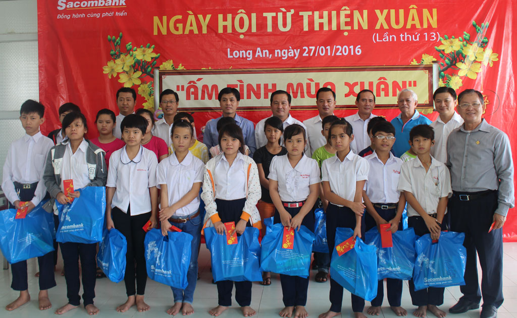 Ngân hàng Sacombank tặng quà tết cho các em tại Trường Nuôi dạy trẻ khuyết tật tỉnh