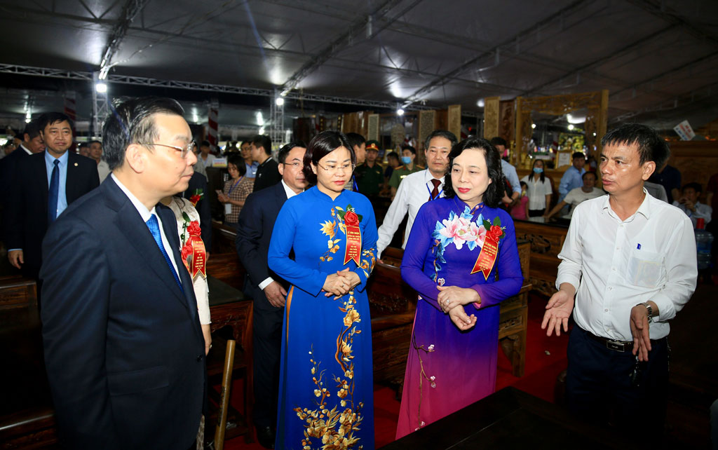 | Các đại biểu tham quan Hội chợ giới thiệu các sản phẩm làng nghề, thủ công mỹ nghệ. |