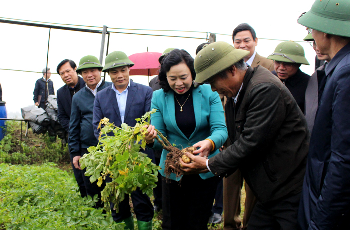 Trước khi làm việc với lãnh đạo huyện Thạch Thất, đoàn đã thăm, kiểm tra mô hình mạ khay, máy cấy và mô hình trồng khoai tây vụ xuân trên địa bàn xã Hương Ngải. Đồng chí Phó Bí thư Thường trực Thành ủy Hà Nội Ngô Thị Thanh Hằng đã thăm hỏi, chúc mừng năm mới một số nông dân và thành viên Hợp tác xã nông nghiệp xã Hương Ngải./.