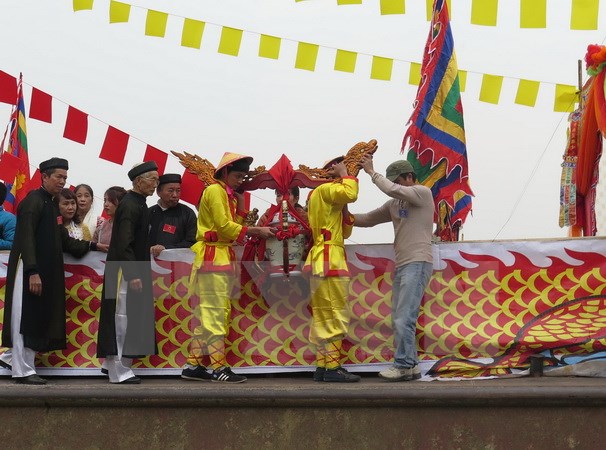 lên bờ để đưa về đền Vua làm lễ tế (Ảnh: Xuân Tiến/TTXVN)