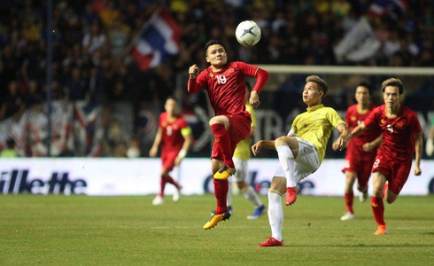 Tuyển Việt Nam (áo đỏ) chạm trán tuyển Thái Lan tại King's Cup 2019. Ảnh tư liệu