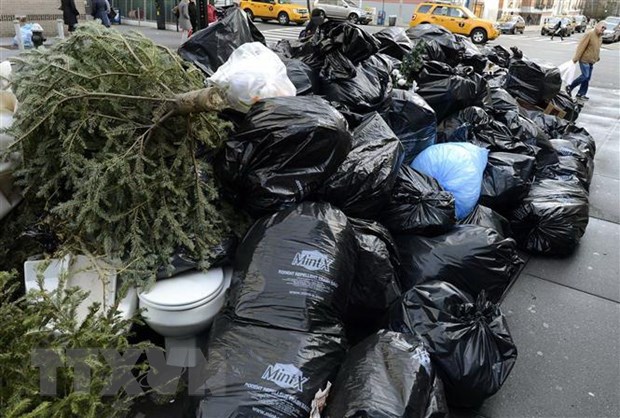 Những túi rác thải trên một đường phố ở New York, Mỹ. (Nguồn: AFP/TTXVN)