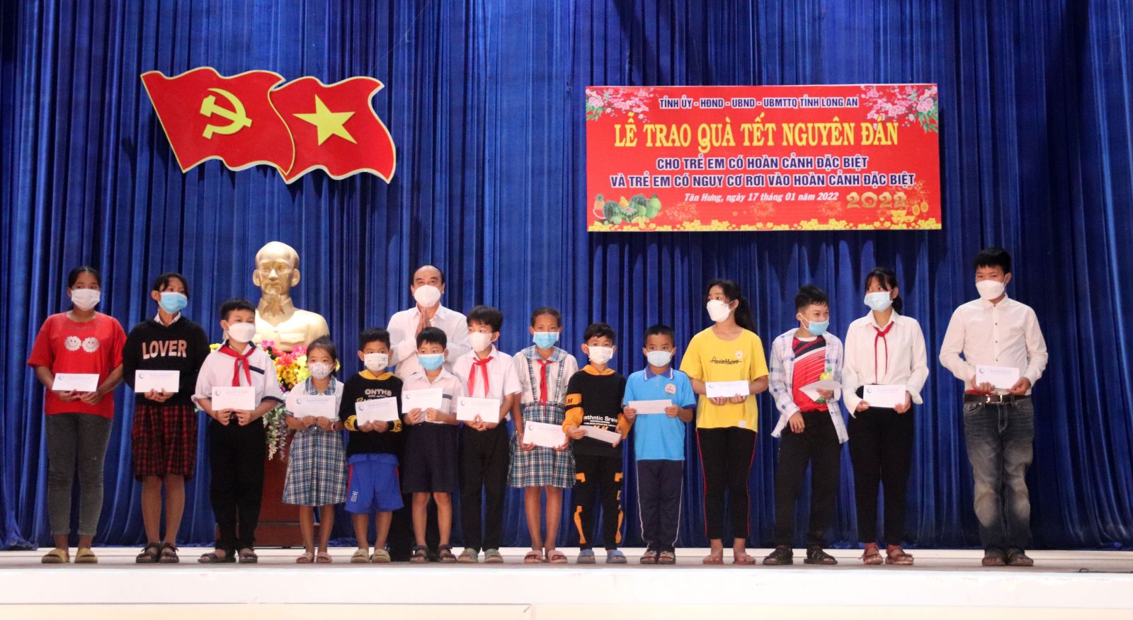 Được biết, nhân dịp Tết Nguyên đán Nhâm Dần, huyện Tân Hưng và huyện Vĩnh Hưng có 400 trẻ em có hoàn cảnh đặc biệt và trẻ em có nguy cơ rơi vào hoàn cảnh đặc biệt được nhận quà. Mỗi phần trị giá 500.000 đồng, nguồn kinh phí từ Quỹ bảo trợ trẻ em tỉnh.