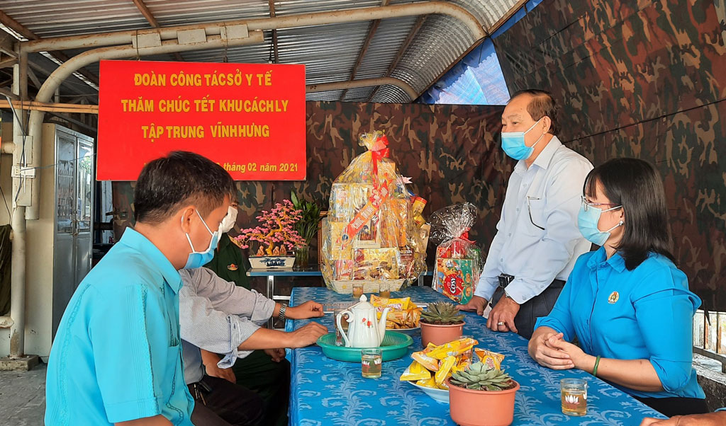 Phó Giám đốc Sở Y tế Long An – Võ Văn Thắng ghi nhận, chia sẻ những khó khăn và động viên cán bộ, y bác sĩ, lực lượng làm nhiệm vụ phát huy tinh thần trách nhiệm, tiếp tục hoàn thành tốt nhiệm vụ phòng, chống dịch Covid-19. Nhân dịp Tết Cổ truyền sắp đến, ông chúc cán bộ, y bác sĩ, lực lượng làm nhiệm vụ tại đây nhiều sức khỏe, nỗ lực vượt qua khó khăn, quan tâm, giúp đỡ người cách ly thật tốt; phân công lực lượng trực, theo dõi sức khỏe người cách ly 24/24h, bảo đảm tuyệt đối quy trình phòng, chống dịch theo quy định.