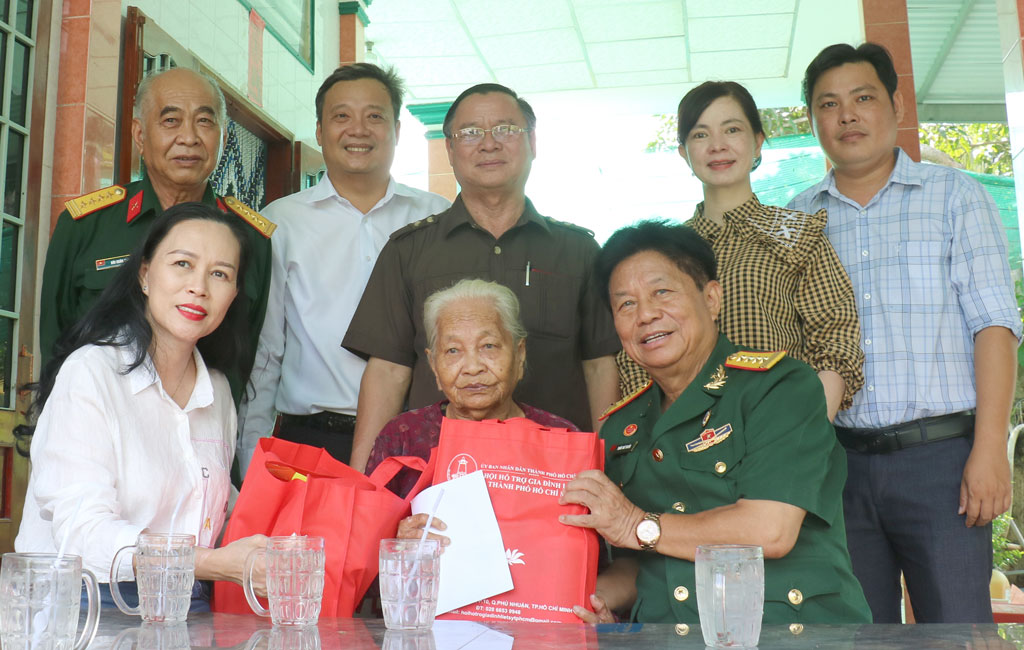 1. Chúng tôi có dịp tháp tùng đoàn công tác của huyện Tân Trụ và mạnh thường quân đến thăm hỏi, động viên, tri ân những đóng góp to lớn của các anh hùng, liệt sĩ; Mẹ Việt Nam Anh hùng (MVNAH); thương, bệnh binh; gia đình chính sách, người có công với cách mạng. Mỗi gia đình là những câu chuyện khác nhau về tinh thần cách mạng, sự cống hiến vì hòa bình, độc lập, giải phóng dân tộc.