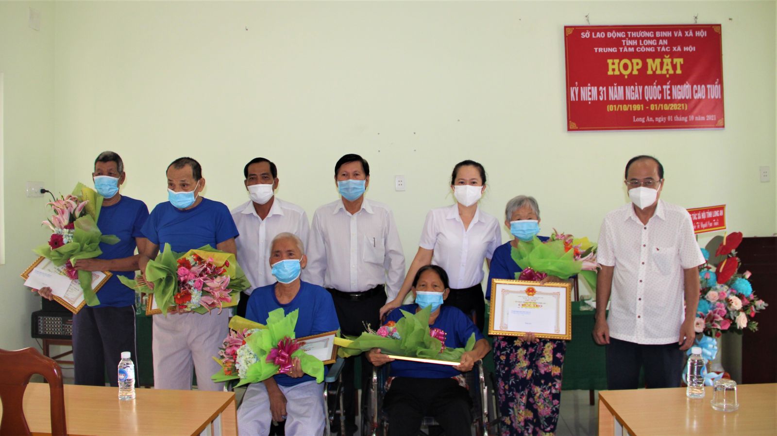 Theo dó, các thành viên trong đoàn ân cần thăm hỏi, động viên, chúc sức khỏe và tặng quà cho các cụ cao tuổi, mỗi phần quà trị giá 500.000 đồng. Dịp này, lãnh đạo Sở Lao động - Thương bình và Xã hộị tỉnh cũng trao tặng giấy mừng thọ và 11 phần quà cho 11 cụ tròn tuổi tại trung tâm, trong đó 10 cụ (tròn 70 tuổi, 75 tuổi, 80 tuổi) mỗi phần quà trị giá 500.000 đồng và 1 cụ tròn 85 tuổi một phần quà trị giá 650.000 đồng.