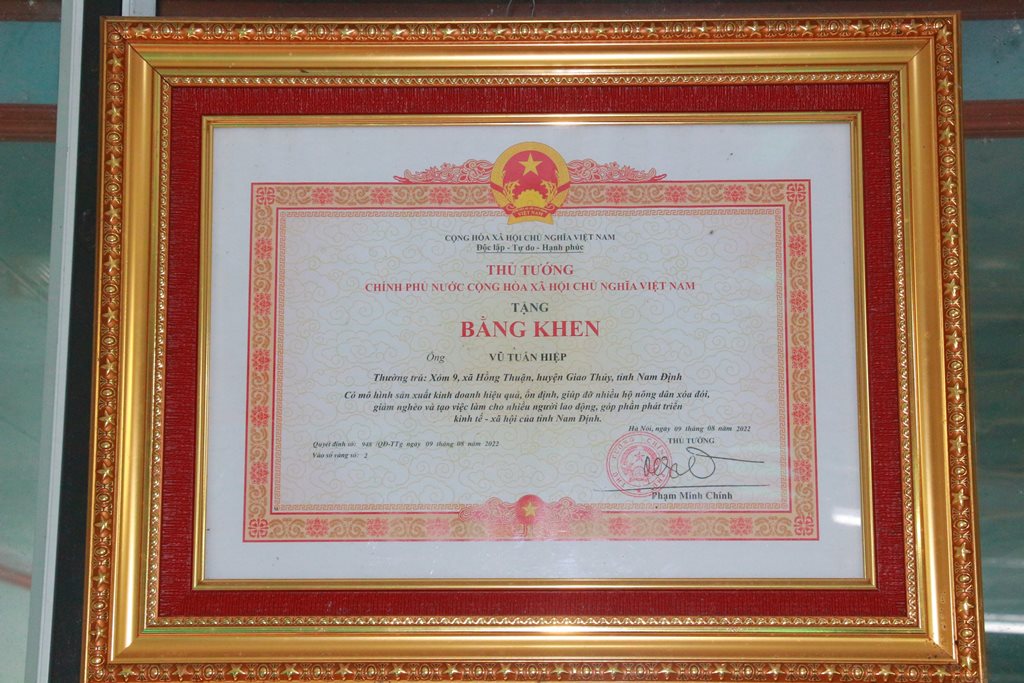 | Năm 2022, HTX Tuấn Hiệp vinh dự được Thủ tướng Chính phủ tặng Bằng khen vì có mô hình sản xuất kinh doanh hiệu quả, ổn định, giúp đỡ nhiều hộ nông dân xóa đói, giảm nghèo. |