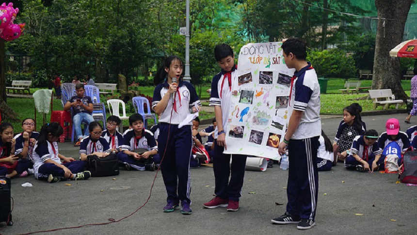 | Học sinh Trường THCS Minh Đức (Quận 1, Thành phố Hồ Chí Minh) tham gia tiết học trải nghiệm tại Thảo cầm viên. Ảnh: H.HG. |