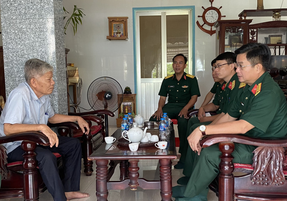 Đại tá Trương Quốc Vinh ân cần hỏi thăm sức khỏe, động viên Anh hùng LLVTND Nguyễn Văn Minh sống vui, sống khỏe với con cháu, tiếp tục phát huy phẩm chất cao đẹp, nêu gương, là chỗ dựa tinh thần cho thế hệ trẻ học tập, phấn đấu trưởng thành và cống hiến cho địa phương.