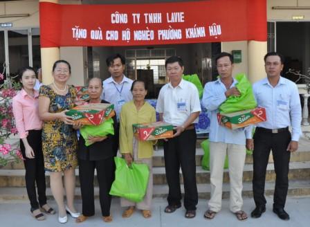 *Cty TNHH LaVie tặng 50 phần quà Tết cho hộ có hoàn cảnh khó khăn, ở phường Khánh Hậu và phường 2, TP.Tân An, mỗi phần quà trị giá 300.000 đồng.