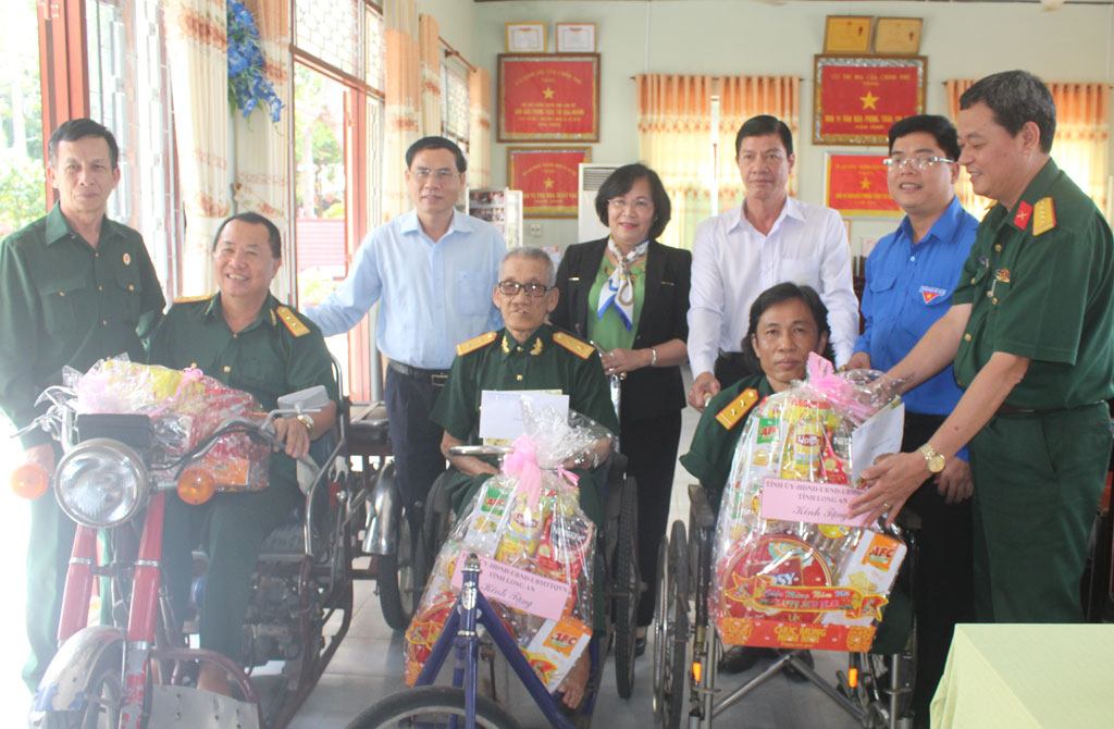 Đoàn cán bộ tỉnh Long An ân cần thăm hỏi, tặng quà và động viên các thương binh