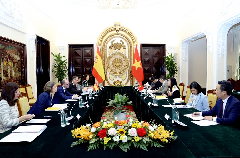 Trong không khí thân tình và hữu nghị, Thứ trưởng Lê Thị Thu Hằng và Quốc vụ khanh Diego Martínez Belío cùng nhau trao đổi về tình hình kinh tế - xã hội của mỗi nước; đánh giá cao những bước phát triển tích cực trong quan hệ hai nước thời gian qua trên các lĩnh vực chính trị - ngoại giao, thương mại - đầu tư, hợp tác phát triển, văn hóa, giáo dục và du lịch, đặc biệt sau 15 năm triển khai khuôn khổ Đối tác chiến lược hướng tới tương lai (2009 - 2024), trong đó Bộ Ngoại giao hai nước giữ vai trò đầu mối.
