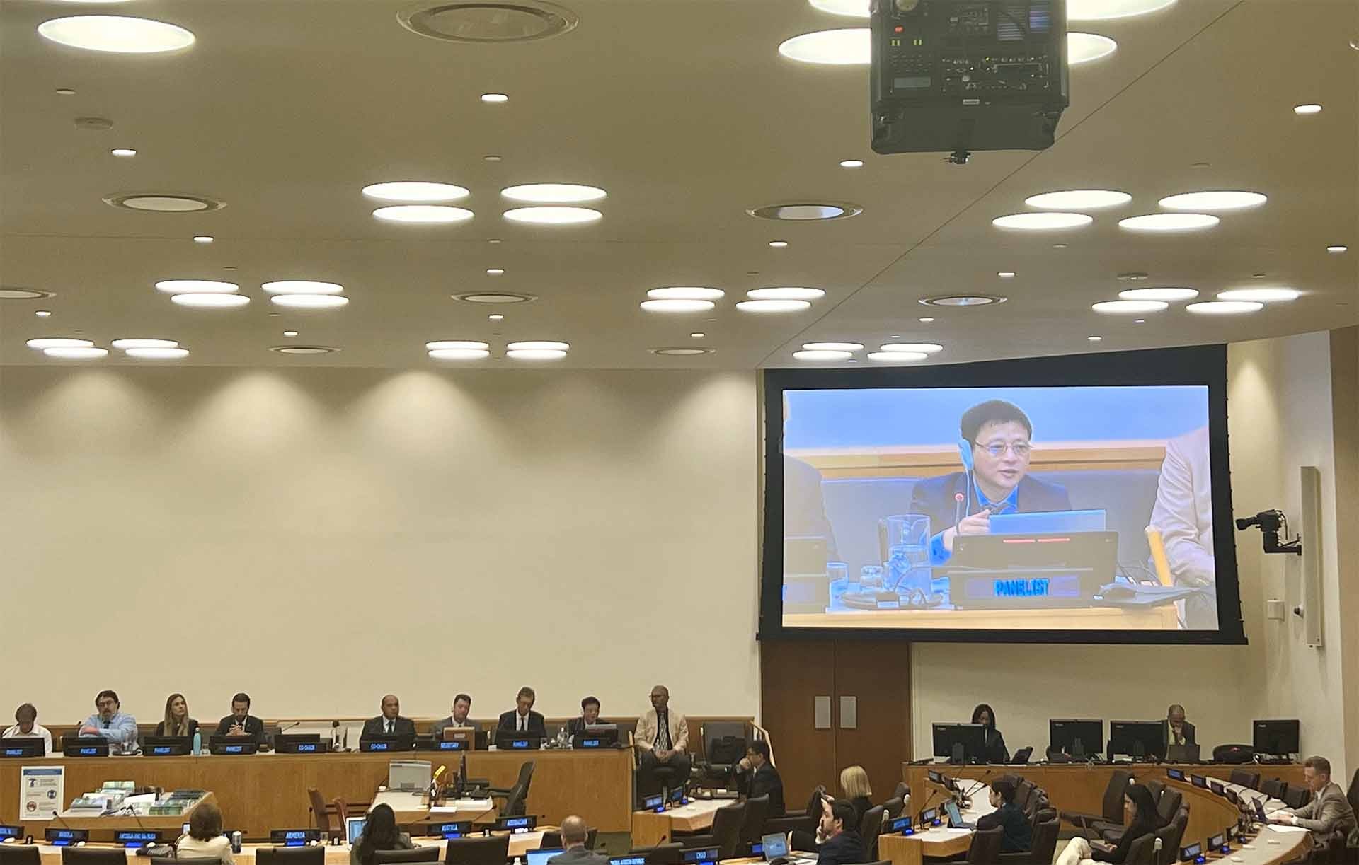 | Tham tán công sứ Lê Thị Minh Thoa, Phó Trưởng Phái đoàn đại diện thường trực Việt Nam tại LHQ phát biểu tại Hội nghị |