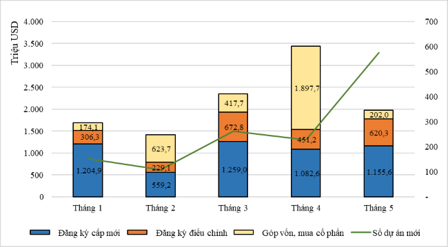 Tháng 5/2023, vốn đầu tư mới tăng mạnh