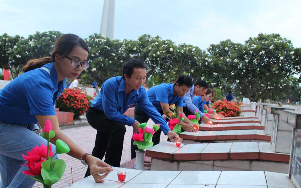 Thắp nến tri ân các anh hùng liệt sĩ. Ảnh: Hữu Bằng