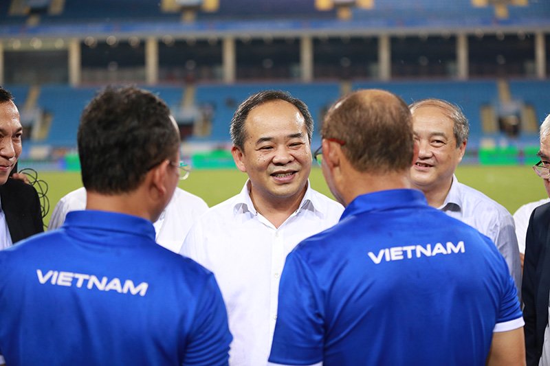 Cùng xuống sân với các quan chức VFF còn có Thứ trưởng Bộ VH, TT&DL Lê Khánh Hải – người duy nhất có mặt trong danh sách ứng cử ghế Chủ tịch VFF khoá VIII. Ông Hải dành những lời khen ngợi tới màn trình diễn của thầy trò HLV Park Hang Seo, đồng thời chúc đội giành chiến thắng trong 2 trận tiếp theo của giải./.