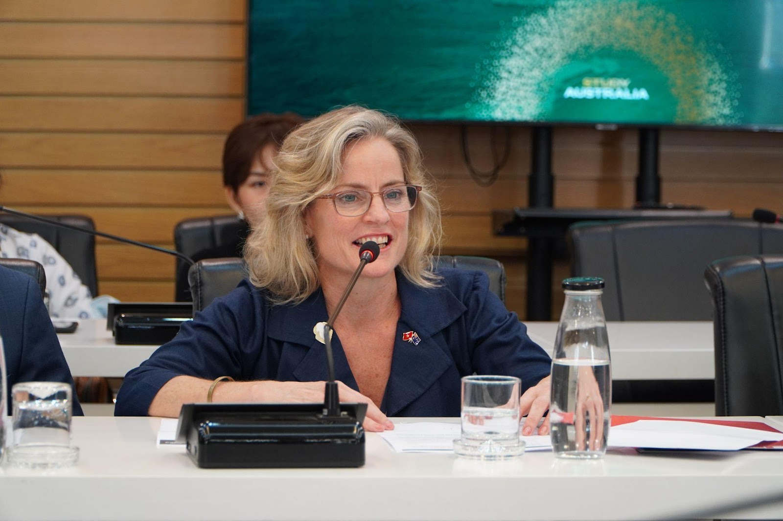 Bà Rebecca Ball, Tham tán Thương mại và Đầu tư Cấp cao, Austrade phát biểu tại họp báo