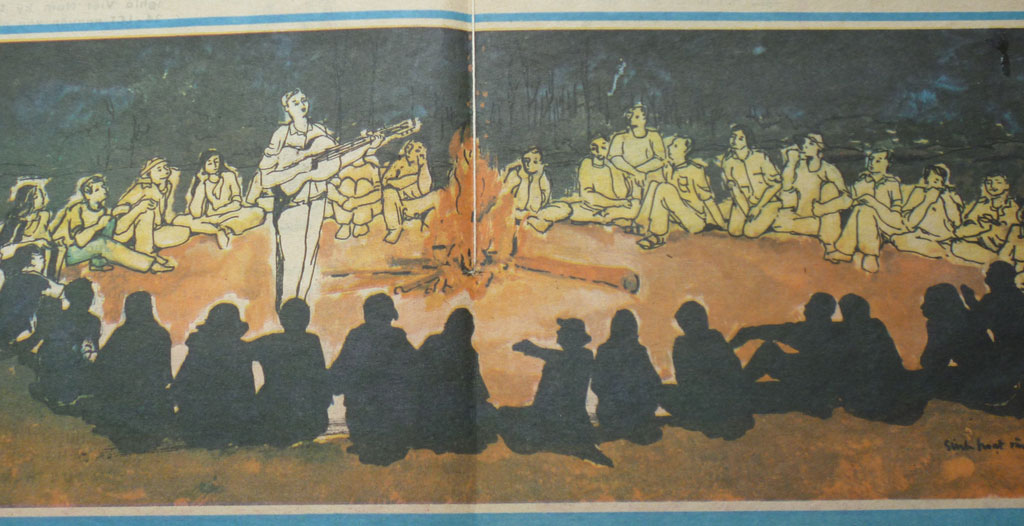 Đêm sinh hoạt lửa trại thanh niên xung phong (Ảnh đặc san Hoa nở tuyến đầu của Thành đoàn TP.HCM - 1977)