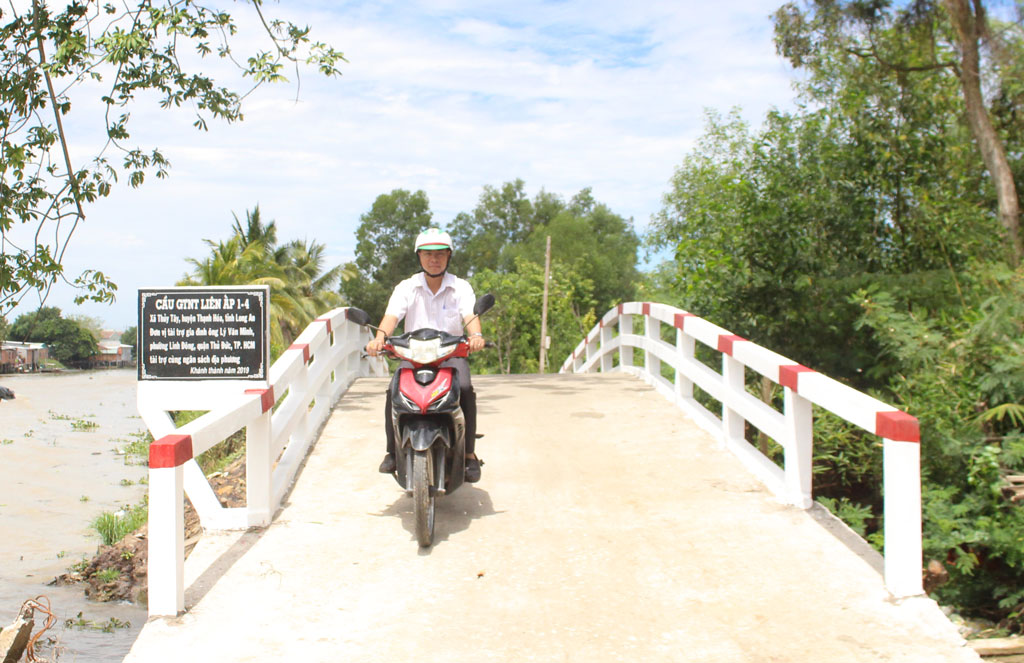 Những cây cầu nông thôn trên địa bàn xã xây dựng được đông đảo người dân có tấm lòng thiện nguyện tham gia. Sự chung sức của mọi người cùng với sự đồng hành của mạnh thường quân, nhà hảo tâm giúp những cây cầu tạm, xuống cấp dần được thay thế. Cụ thể như cầu Tư Bé với chiều dài 22m, rộng 3m được thiết kế theo chuẩn nông thôn mới. Tổng trị giá xây dựng cầu trên 200 triệu đồng, trong đó, người dân đóng góp ngày công xây dựng trên 50 triệu đồng.