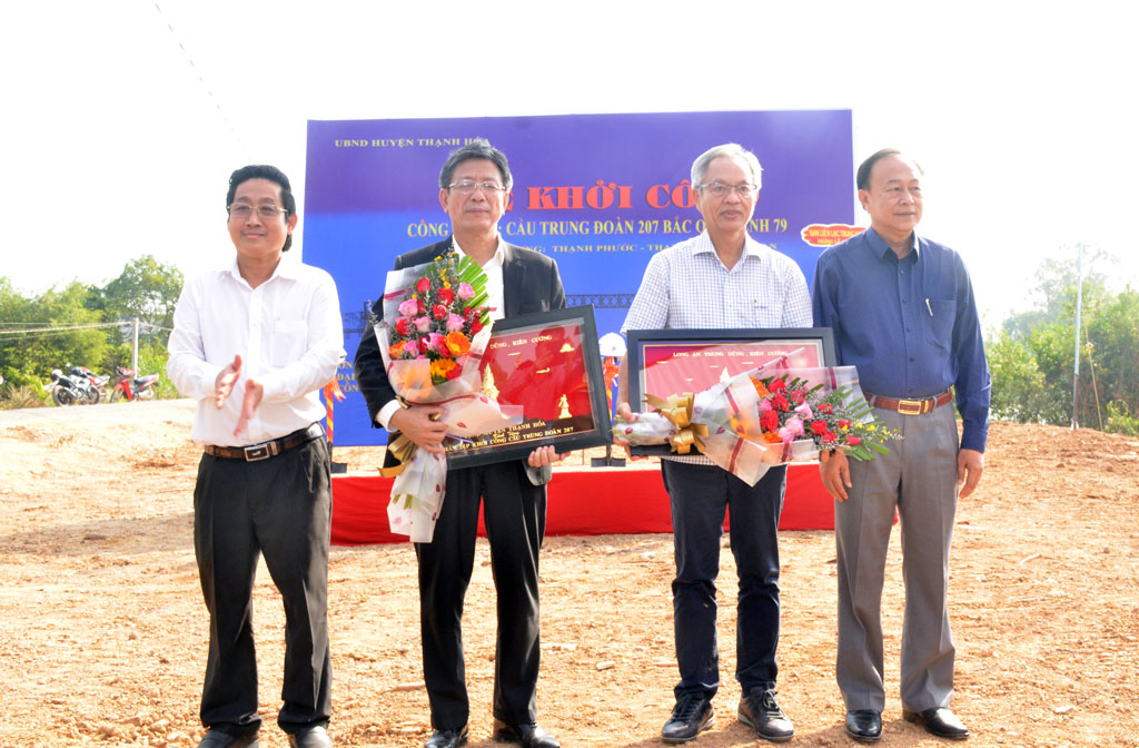 Lãnh đạo huyện Thạnh Hóa tặng hoa, quà lưu niệm cho 2 đơn vị tài trợ