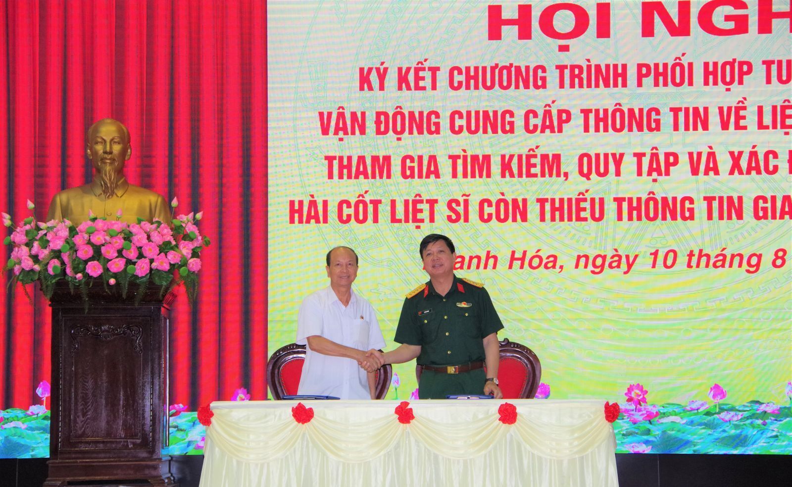 Tại Hội nghị, Bộ CHQS tỉnh Thanh Hóa và Hội Cựu chiến binh tỉnh đã ký kết chương trình phối hợp giai đoạn 2023-2030, trong đó xác định các nội dung đó là: Cần tiếp tục tăng cường sự phối hợp giữa Trung ương Hội Cựu chiến binh Việt Nam và Ban Chỉ đạo quốc gia 515; nâng cao nhận thức, trách nhiệm của cấp ủy, chính quyền địa phương, lãnh đạo, chỉ huy các cơ quan, đơn vị với các cấp hội, hội viên và cựu chiến binh về nhiệm tìm kiếm, quy tập và xác định danh tính hài cốt liệt sĩ còn thiếu thông tin; thực hiện giải mã ký hiệu, phiên hiệu đơn vị Quân đội trong chiến tranh; công tác kiểm tra, giám sát các hoạt động tìm kiếm, quy tập và xác định danh tính hài cốt liệt sĩ còn thiếu thông tin đảm bảo tính khoa học; kịp thời xử lý, ngăn chặn những thông tin sai lệch, bịa đặt, thiếu cơ sở khoa học (mang yếu tố tâm linh) trong công tác quy tập hài cốt liệt sĩ. Chỉ đạo hoàn thành cơ bản công tác rà soát, bổ sung, hoàn thiện hồ sơ, danh sách liệt sĩ; xây dựng cơ sở dữ liệu quốc gia về liệt sĩ; phát huy thế mạnh của thông tin điện tử trong công tác thông tin, tuyên truyền để công tác tìm kiếm, quy tập hài cốt liệt sĩ đạt kết quả cao nhất.