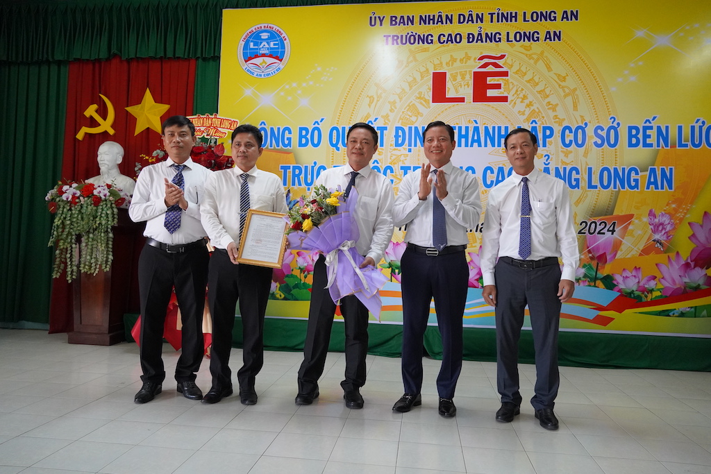 Tại buổi lễ, đại diện Trường Cao đẳng Long An công bố Quyết định của Bộ Lao động - Thương binh và Xã hội về việc sáp nhập Trường Trung cấp Kinh tế - Kỹ thuật vào Trường Cao đẳng Long An; đồng thời, công bố quyết định thành lập Cơ sở Bến Lức trực thuộc Trường Cao đẳng Long An và quyết định phân công Giám đốc, Phó Giám đốc Cơ sở Bến Lức.