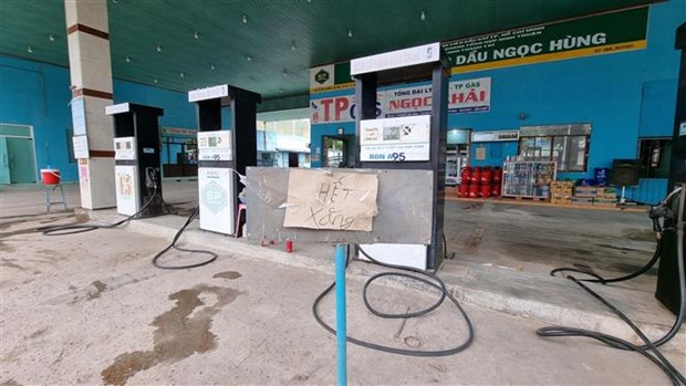 Một cửa hàng kinh doanh xăng dầu tại thành phố Phan Rang-Tháp Chàm treo bảng thông báo hết xăng. (Ảnh: Nguyễn Thành/TTXVN)