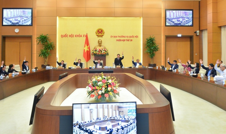 | Ủy ban Thường vụ Quốc hội biểu quyết thông qua nghị quyết thành lập đơn vị hành chính. (Ảnh: Anh Văn) |