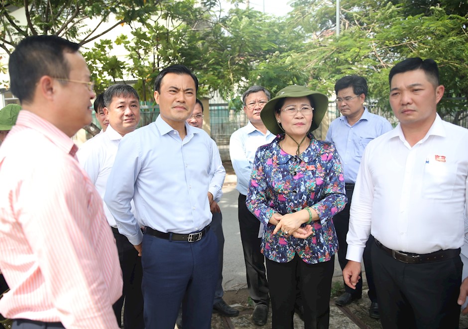 | Đồng chí Nguyễn Thị Lệ, Chủ tịch HĐND TP Hồ Chí Minh và các đồng chí lãnh đạo giám sát dự án rạch Xuyên Tâm. (Ảnh: thanhuytphcm.vn) |