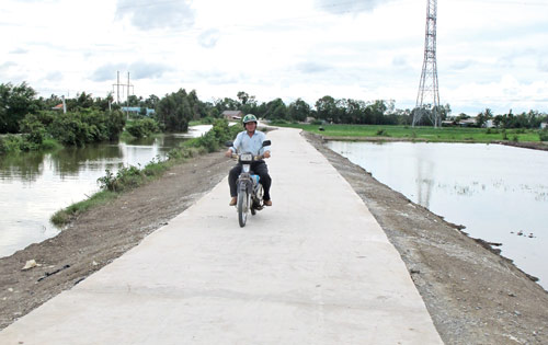 Lưu thông qua tuyến đường kênh Học trò (đoạn Thanh Phú-cao tốc) được bêtông với chiều dài gần 1,5km, tổng mức đầu tư gần 2 tỉ đồng, chúng tôi phấn khởi khi nhìn thấy nhiều ngôi nhà tường đã mọc lên thay thế những căn nhà vách lá tạm bợ trước đây. Anh Nguyễn Văn Cường đang xây dựng mới ngôi nhà cặp tuyến đường này vui vẻ nói: “Lúc trước, tuyến đường này hẹp đến nỗi nếu 2 chiếc xe đạp tránh nhau không khéo sẽ rớt xuống kênh. Vào mùa mưa thì đường sình lầy, khổ nhất là đến mùa thu hoạch lúa phải thuê người vận chuyển, còn hằng ngày, phải đưa rước con đi học bằng xuồng. Hiện nay, xem như bao mơ ước trước đây của chúng tôi đã trở thành hiện thực, tuyến đường đã được nâng cấp, mở rộng, giúp người dân đi lại dễ dàng hơn”.