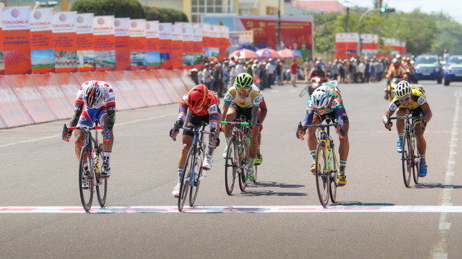 Huỳnh Thanh Tùng (thứ hai từ trái sang) giành chiến thắng nghẹt thở tại TP Tuy Hòa. Ảnh: TDA