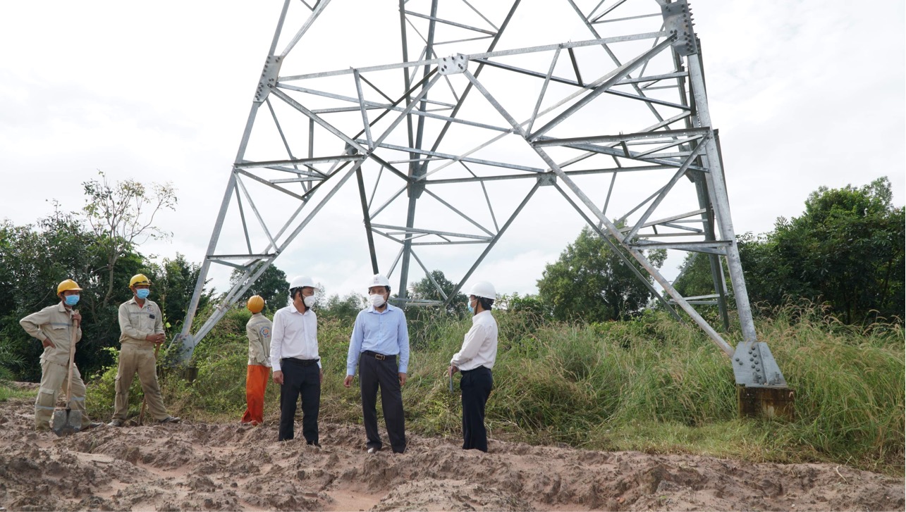 | Đoàn kiểm tra tiến độ thi công đường dây 110kV Tân Biên – Châu Thành (Suối Dộp) tại khu vực huyện biên giới Tân Biên, tỉnh Tây Ninh. |