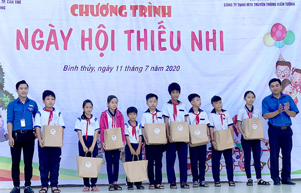 Đoàn Trường Trung cấp Hồng Hà tặng quà cho thiếu nhi có hoàn cảnh khó khăn trên địa bàn phường Thới An Đông.