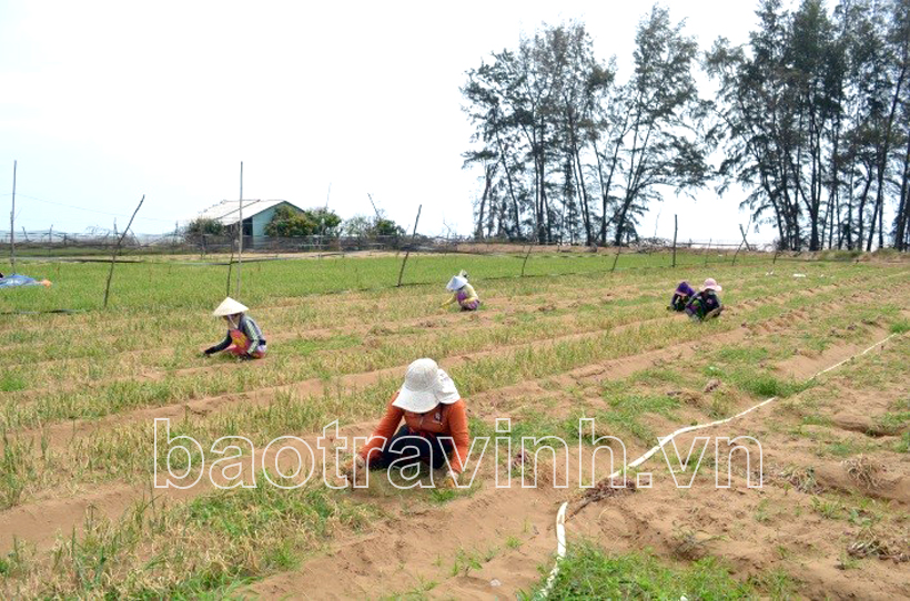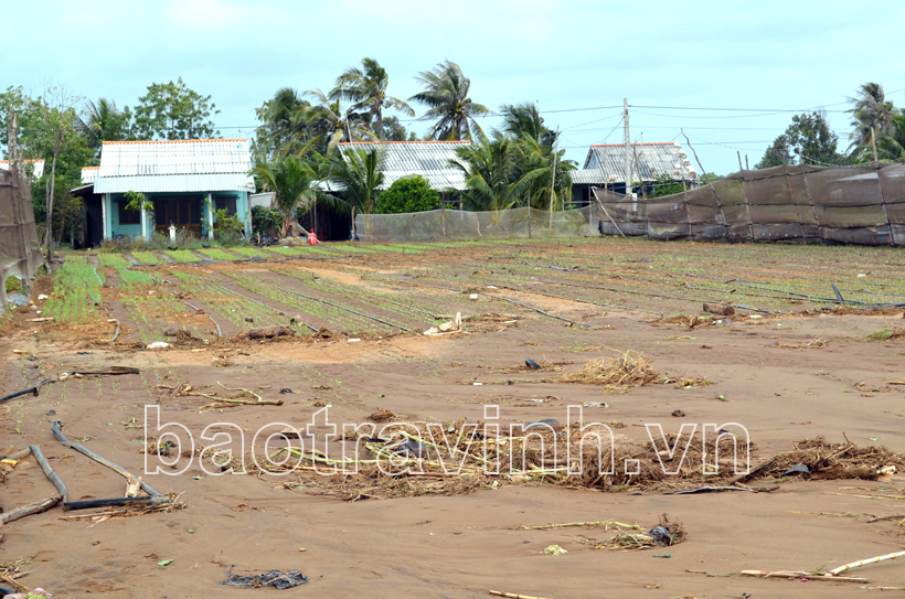 Người thì trồng màu không được bởi đất bị nhiễm mặn do nước biển tràn vào đành bỏ đất hoang, người thì xuống giống cây màu đang phát triển tốt thì nước mặn tràn vào thiệt hại nhiều hơn. Gia đình ông Phạm Văn Nghĩa, ấp Đông Thành xuống giống được 0,6ha hành tím. Đầu năm 2021, nước biển dâng tràn ngập cả rẫy hành; gia đình tranh thủ thu hoạch 0,15ha hàng tím mới 50 ngày tuổi (hành đến độ thu hoạch là 65 ngày tuổi), số còn lại chỉ mới 40 ngày tuổi bị thiệt hại hoàn toàn. Ông Nghĩa nói: “con nước tháng trước đã cuốn trôi nhà tôi rồi, đến con nước ngày 13/01 này, nước biển dâng tràn ngập hoàn toàn rẫy hành tím, đây là nguồn thu nhập chính của gia đình. Ước thiệt hại hơn 80 triệu đồng vốn đầu tư (chưa tính công lao động)”.