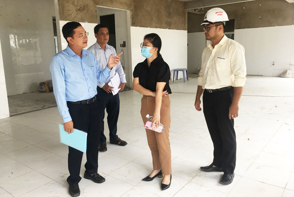 Lãnh đạo Ban Quản lý dự án Đầu tư xây dựng các công trình dân dụng và công nghiệp tỉnh kiểm tra tiến độ xây dựng Trạm Y tế xã Nhơn Thạnh Trung, TP.Tân An