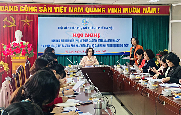 Thực hiện Đề án “Đẩy mạnh vai trò của Hội phụ nữ các cấp trong xây dựng nông thôn mới, đô thị văn minh đến năm 2025” do UBND thành phố phê duyệt, từ tháng 10/2022, Hội Liên hiệp phụ nữ thành phố Hà Nội đã chỉ đạo điểm mô hình “Phụ nữ tham tham gia xử lý rơm rạ sau thu hoạch” và “Phân loại, xử lý rác thải sinh hoạt hữu cơ tại hộ gia đình hội viên phụ nữ nông thôn” tại 10 huyện.