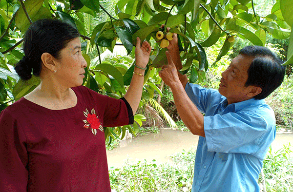 Vợ chồng thầy Huỳnh Công Thống luôn sát cánh bên nhau trong công việc vườn tược, giảng dạy đến chăm sóc gia đình.