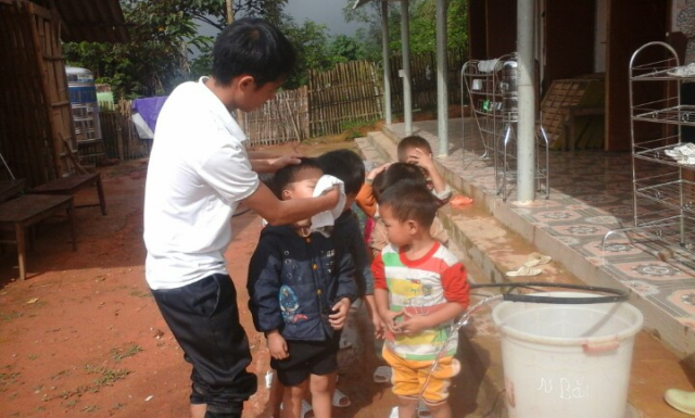 | Thầy Sấu chăm sóc cho trẻ hằng ngày tại điểm trường. |
