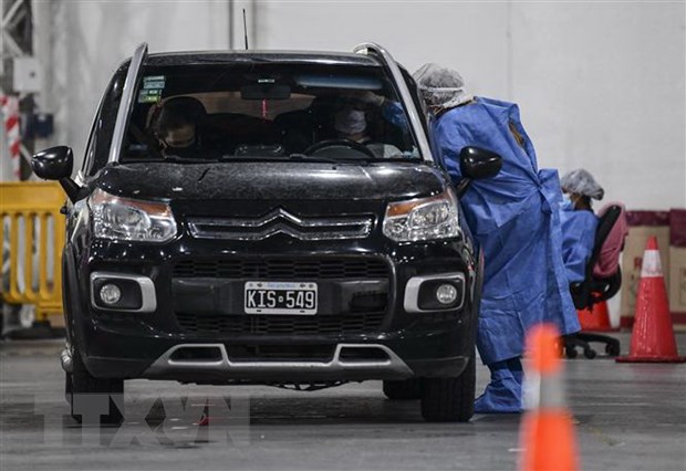 Nhân viên y tế lấy mẫu xét nghiệm COVID-19 tại Buenos Aires, Argentina. (Ảnh: AFP/TTXVN)
