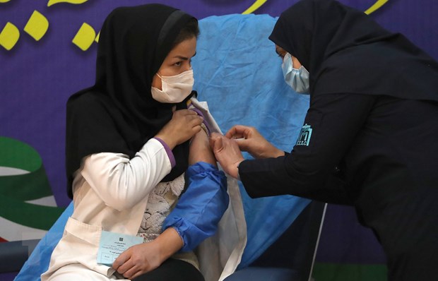 Một nhân viên y tế được tiêm vaccine ngừa COVID-19 tại Tehran, Iran ngày 9/2/2021. (Ảnh: AFP/TTXVN)