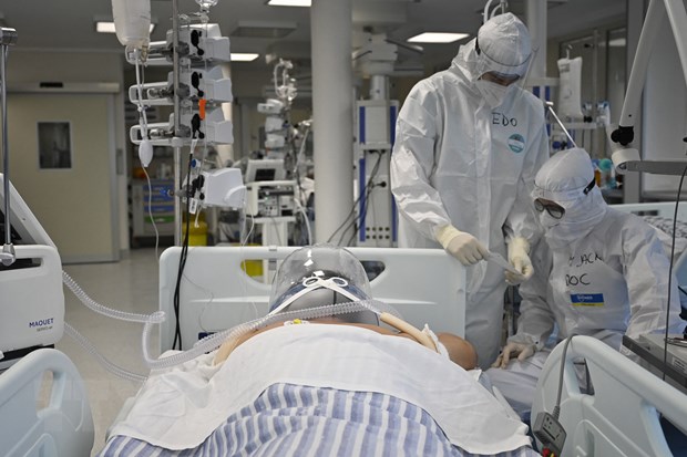 Nhân viên y tế diều trị cho bệnh nhân COVID-19 tại bệnh viện ở Rome, Italy. (Ảnh: AFP/TTXVN)